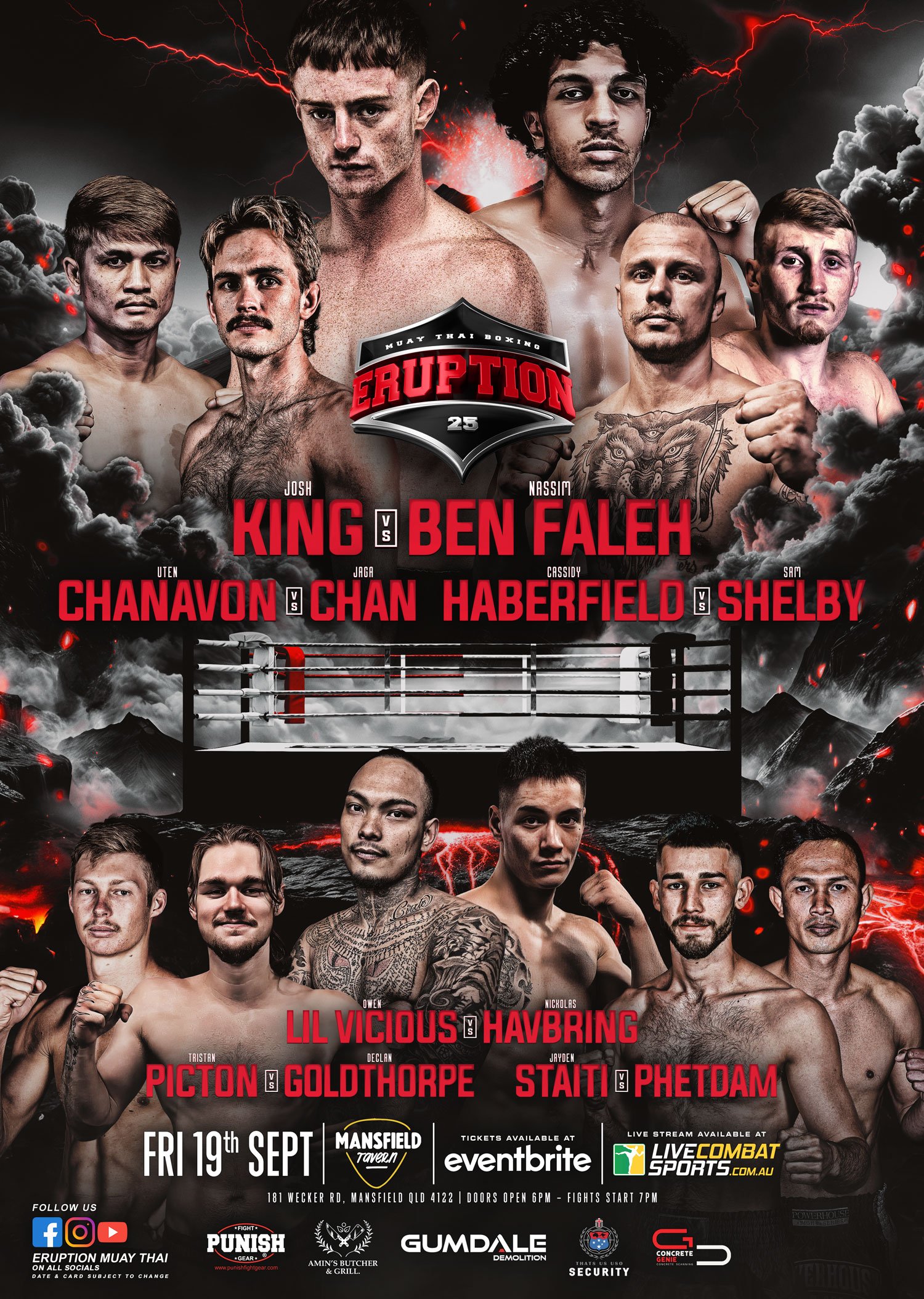 eruption muay thai streaming live All Eruption events are streamed live so that you can catch the action from wherever you are NEXT EVENT ERUPTION MUAY THAI 25 LIVE Livesteam available only on livecombatsports.com.au FIRST FIGHTS BEGIN: QLD: 7:30PMVIC: 7:30PMNSW: 7:30PMSA: 7:00PMWA: 5:30PM LIVESTREAM AVAILABLE HERE